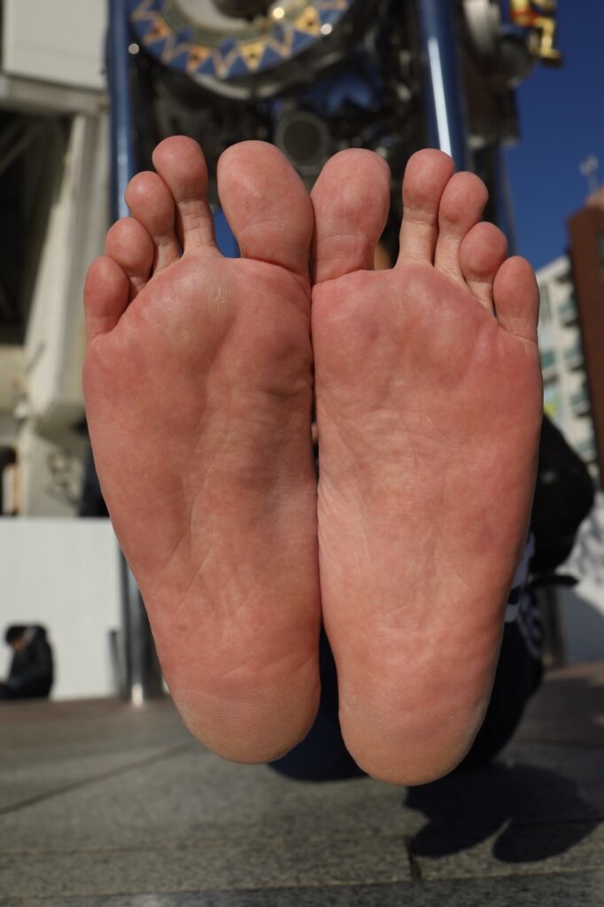- 右足裏の指の付け根中央付近に皮膚の硬化が見られるところ